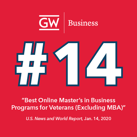 GWSB also earned high marks in the following categories: “Best Online General Management MBA Programs” (#7), “Best Online MBA Programs for Veterans” (#16) and “Best Online Master’s in Business Programs for Veterans” (#14).